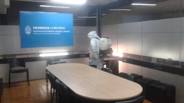 Para la desinfección de, aproximadamente 30 oficinas de la dependencia, se utilizaron atomizadoras motorizadas y mochilas manuales con picos de bajo volumen. Asimismo, se utiliza amonio cuaternario de 5ta generación.