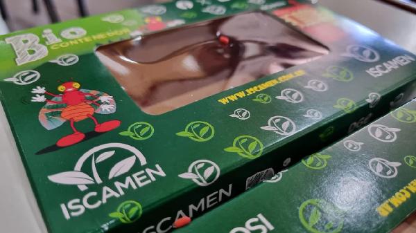 Los Biocontenedores son cajas de cartón que contienen pupas o capullos de moscas del Mediterráneo esterilizadas, producidas en la Bioplanta de insectos estériles de Santa Rosa. Están impresos con información e instrucciones para su utilización y cuentan con una ventana de visualización para que los alumnos realicen un proceso científico de seguimiento, observación y aprendizaje del ciclo biológico de los insectos.